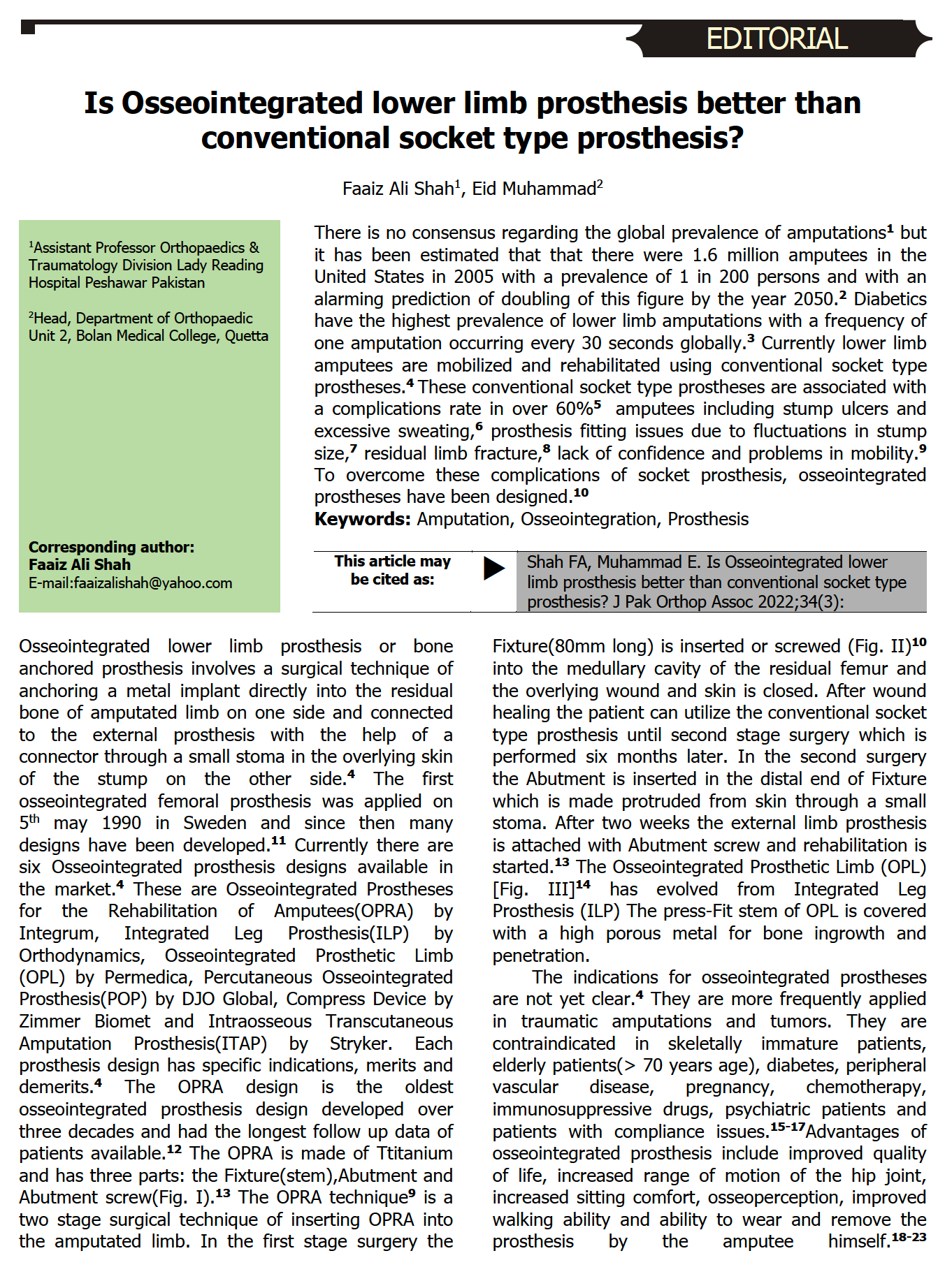 Is Osseointegrated lower limb prosthesis better than conventional socket type prosthesis?. (2022). Journal of Pakistan Orthopaedic Association, 34(03), 92-96. https://www.jpoa.org.pk/index.php/upload/article/view/662