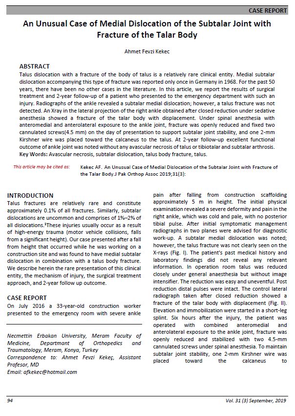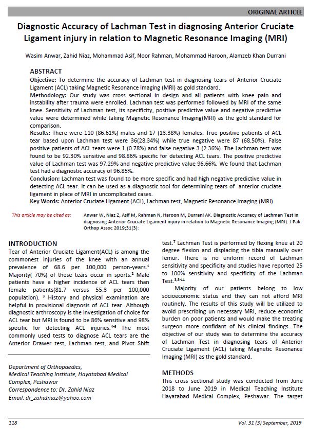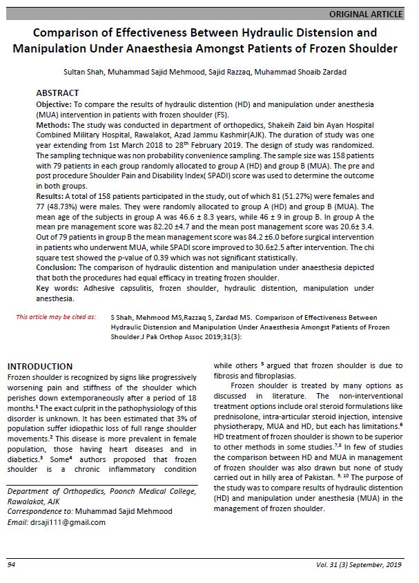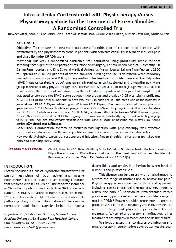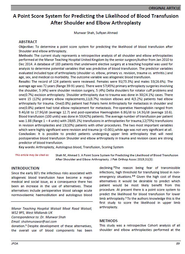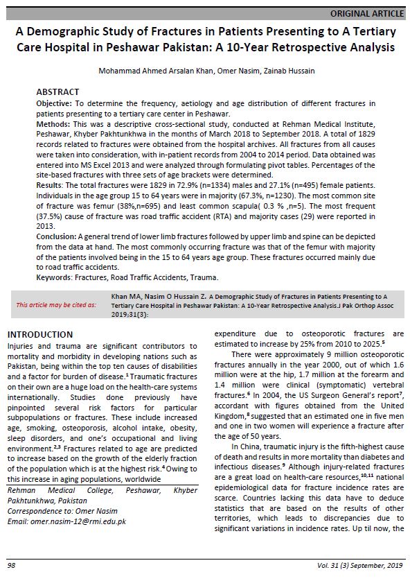 Vol. 31 No. 03 (2019): Journal of Pakistan Orthopaedic Association