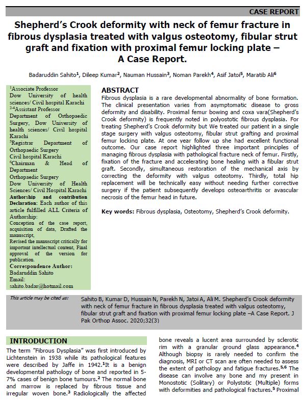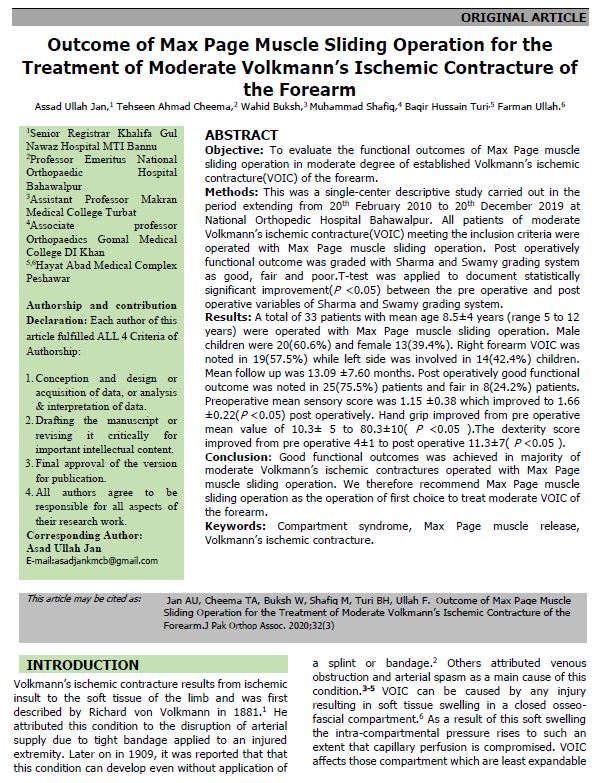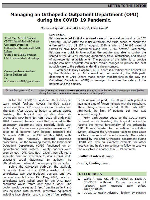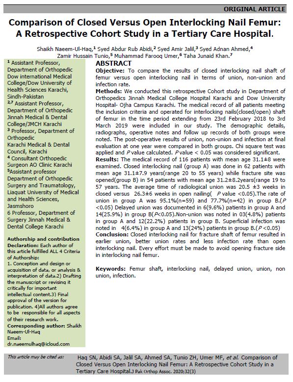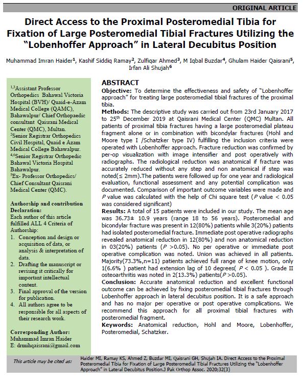 Vol. 32 No. 03 (2020): Journal of Pakistan Orthopaedic Association (JPOA)